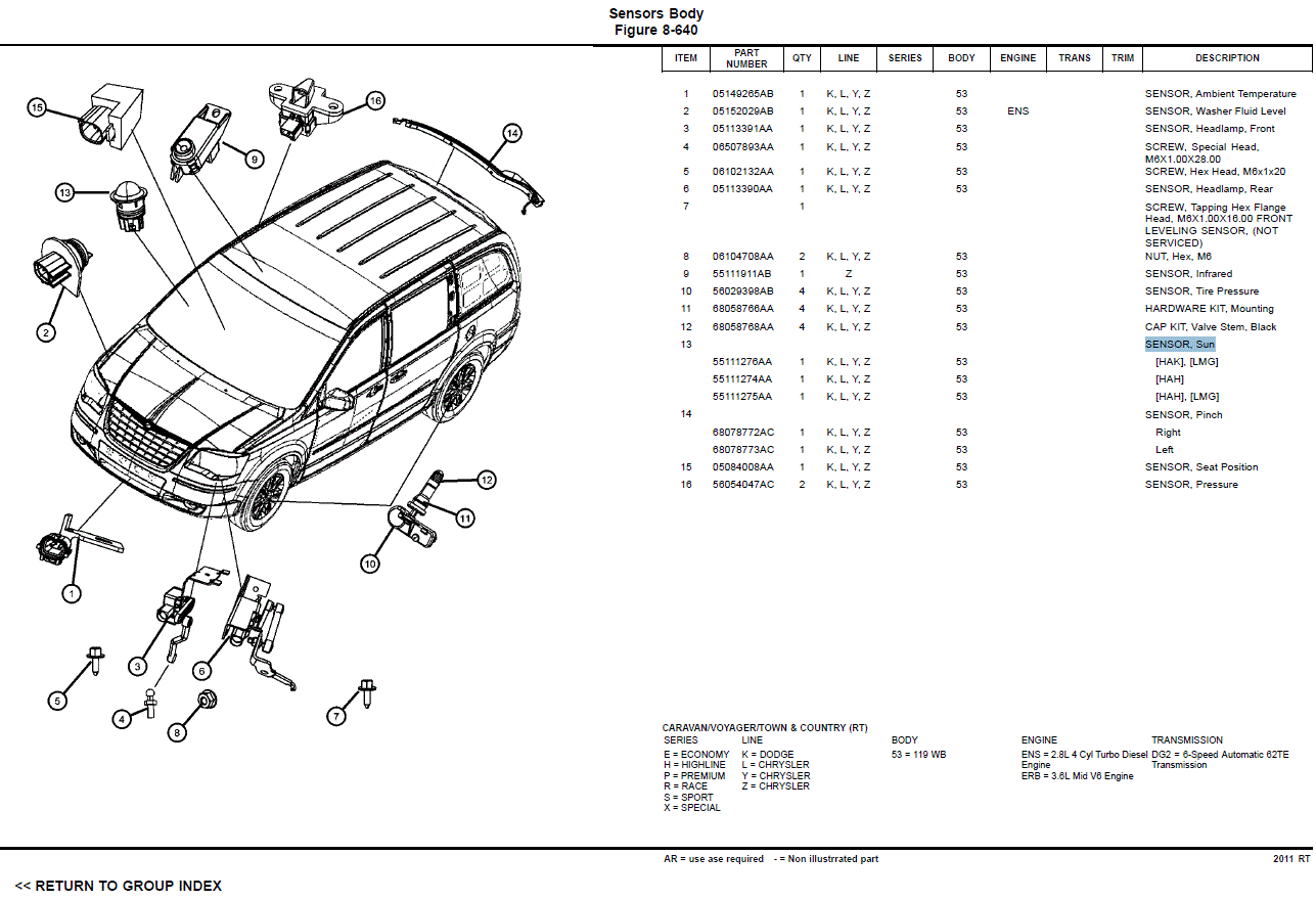Auf Deiner Zeichnung ist der Regensensor nicht abgebildet und aufgeführt. Daraus schließe ich, dass die Version 2011 RT derartige Sensoren noch nicht hatte.
