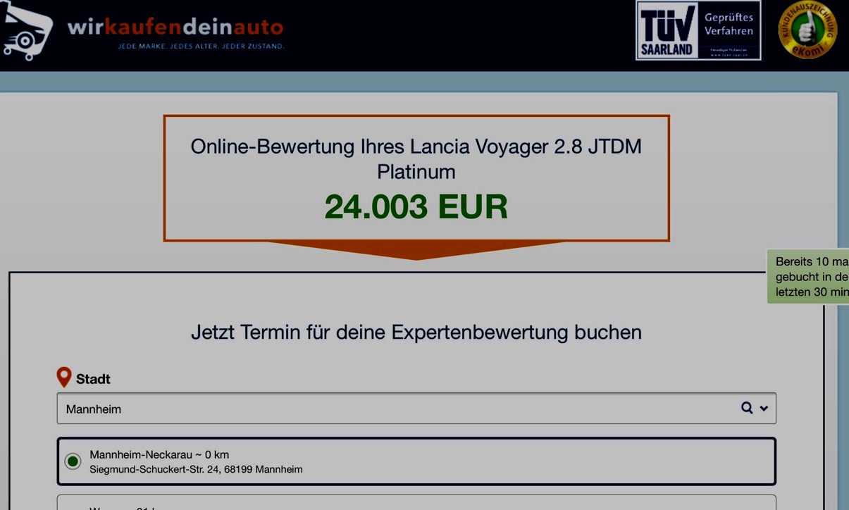 • Wir kaufen dein Auto de ist wahrscheinlich je nach Standort Dummenfang. Auf der Webseite haben sie bei meinen Eltern ca. 1000 - 1500€ mehr geboten als die örtlichen Händler (und das ohne Zusatzausstattung durch Pakete, nachweisbar durch Kaufvertrag). Der Wagen hatte keine Mängel, alle Durchsichten, Laufleistung von 6000km pro Jahr. Vor Ort beim Besichtigungstermin wurden meine Eltern darauf aufmerksam gemacht, dass auf vom Preis des Online-Portals die Mehrwertsteuer abgezogen werden muss. Wollen die einen verarschen? Danach begann der Terror. Mails oder Anrufe, ob der Wagen noch verkauft werden soll. Wenn wundert es... Ergo, jeder macht seine eigene Erfahrungen mit Händlern.