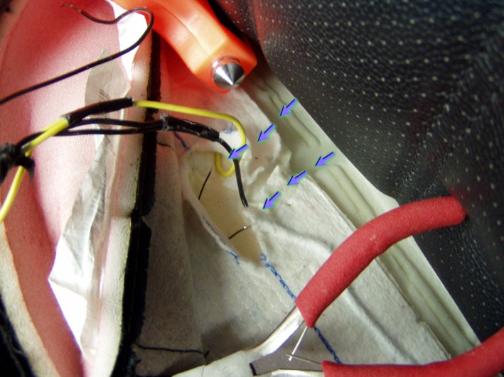 Warum nicht löten? Dabei muss man nur aufpassen, das man rundherum das Polster abdeckt, z.B. mit Alufolie, damit nichts anfängt zu brennen wenn man mal etwas tropft oder an den Schaum kommt. Mit einer kleinen Lötspitze sollte das doch kein Problem sein. Bei mir war ja die Leitung aus der Quetschverbindung herausgefluscht, das war mir auch nicht sehr vertrauenserweckend. Dann doch lieber löten und eventuell eine kleines neues Stück Leitung zum Verlängern.