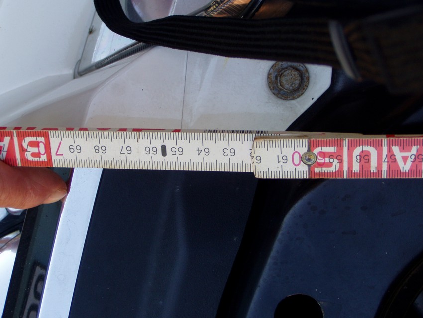 Ich habe mal eine Zollstock angelegt. Gemessen von der Blechkante unter der Plastikabdeckung. Das Maß ist auf beiden Seiten gleich. Leider hat mein Kameraakku aufgegeben. Wenn die wieder geht, nehme ich mal paar relevante Maße ab, damit Du eine Grundlage hast. Das macht aber nur Sinn, mit einer Aufnahme vom gesamten Motorraum.