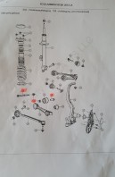 Oben sind die Einstellschrauben für den Sturz am unteren Querlenker aufgeführt. Es erhebt sich die Frage, ob bei der Montage Teile der Achsversion 1 mit 2 oder umgekehrt verwechselt worden sind.