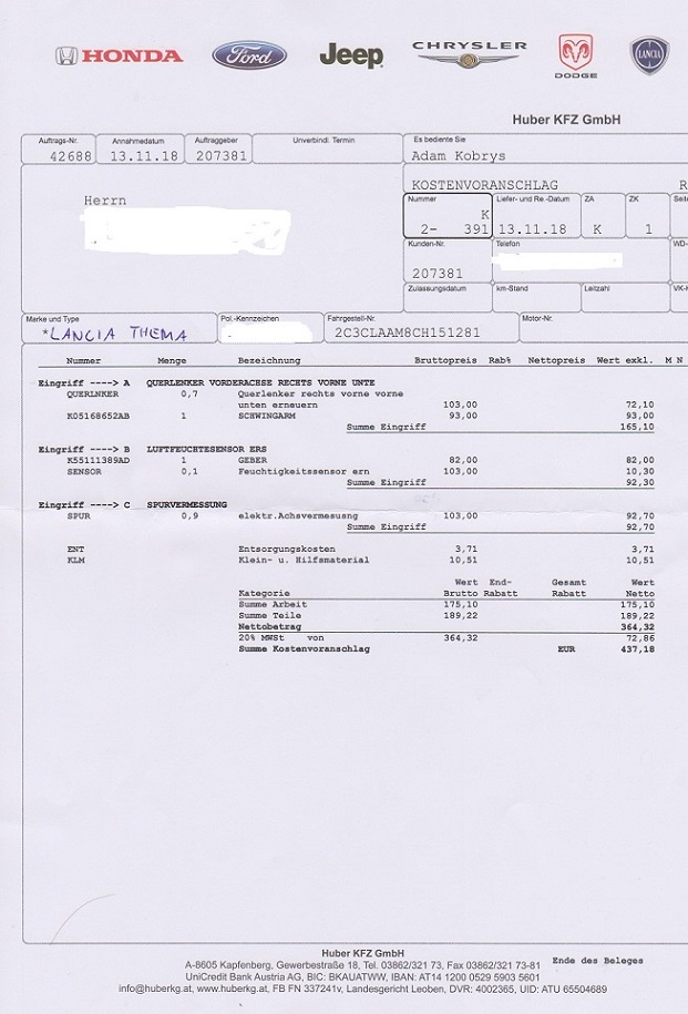 inkl. Aus und Einbau samt Achsvermessung inkl. Märchensteuer wären dass dann € 650,32 da kommt mir dann doch sehr viel vor.