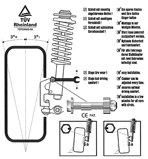 Die besagten Exenterbolzen von MB , die sind eigentlich dazu gedacht um bei ner Tieferlegung ein Klein bischen Sturz rauszuholen... , die bringen aber nur irgendwas im null-komma bereich.....