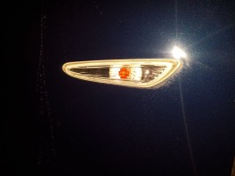 Die Kotflügelblinker hat er auch, vom Design her würde ich auf die BMW-Blinker tippen, wahrscheinlich von einem E46
