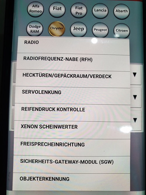 Ich wollte die gelernte Getriebeelektronik zurücksetzen. Unter gearbox -> Chrysler Ultradrive 62TE automatic transmission MY 2014 habe ich die Option gefunden.