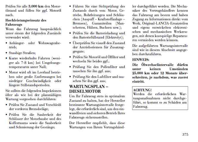 im zweifel SCHRIFTLICH bei Lancia Anfragen und eine SCHRIFTLICHE Antwort bekommen, eventuell liegts nur daran dass die in den USA auf Nummer Sicher gehen wegen der Rechtssprechung dort ;).6 Monate oder 12000km ist auch verdammt kurz ist das nur am Anfang so ( quasi einfahrphase ??? ) oder immer?