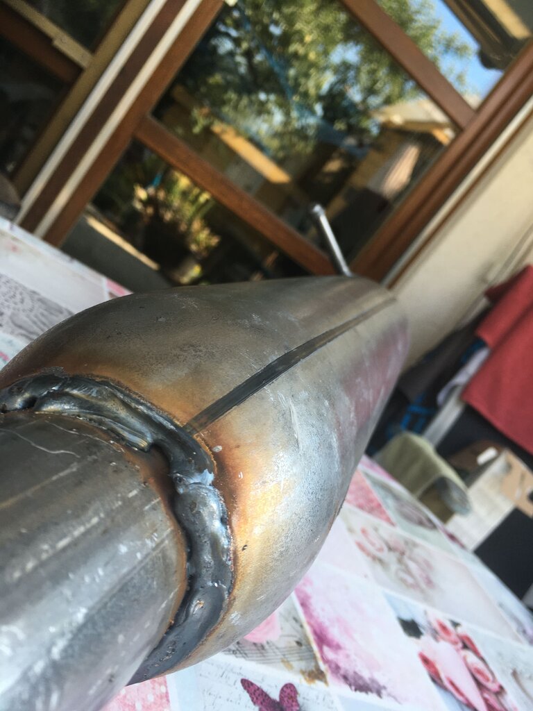 Anstatt zu reklamieren habe ich die Naht zugeschweißt weil ich einbauen wollte.Dann habe ich festgestellt dass am originalen alten Vordämpfer ein ca. 3 mm großes Loch vorhanden ist, das original aussieht wie eingestanzt.