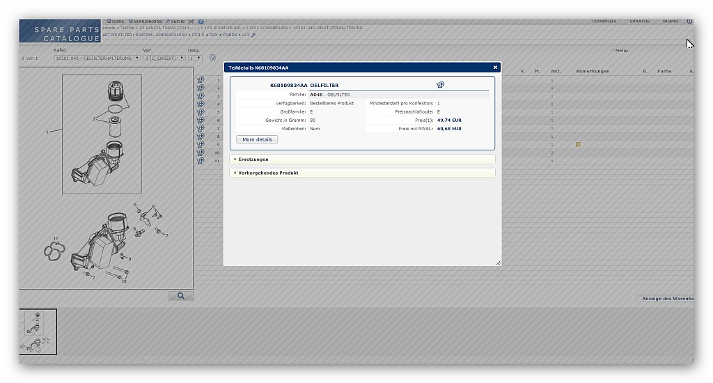 Alles in allem habe ich 512,-€ brutto ( ohne Öl vom Händler) bezahlt.Leider wird der Motorölfilter im freien Handel noch nicht angeboten.......erstaunlicherweise gibt aber den Getriebeölfilter!