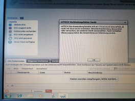 Beim Starten von Witech wird auf der ersten Seite mein Fahrzeug wie gewohnt erkannt. Auf der 2. Seite, wo man "Offline arbeiten" anklickt, erscheint ein Fenster wegen irgend welchen