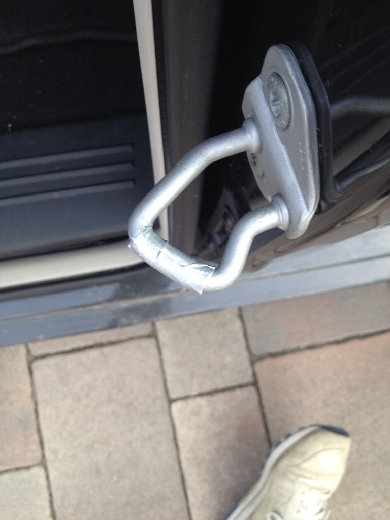 Schnell kam ich auf die obere Schiebetür-Aufnahme - da ich schon immer den Eindruck hatte das es hinter dem Fahrersitz knarrt.
