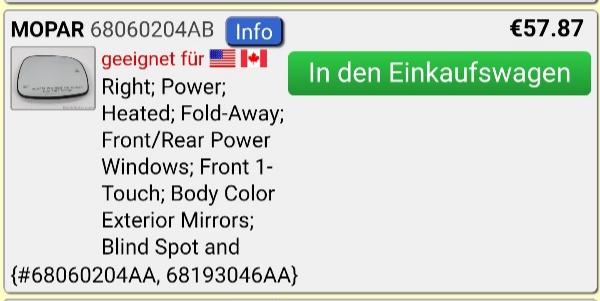 Original und neu von Mopar 57,87€ + Versand+ Zoll