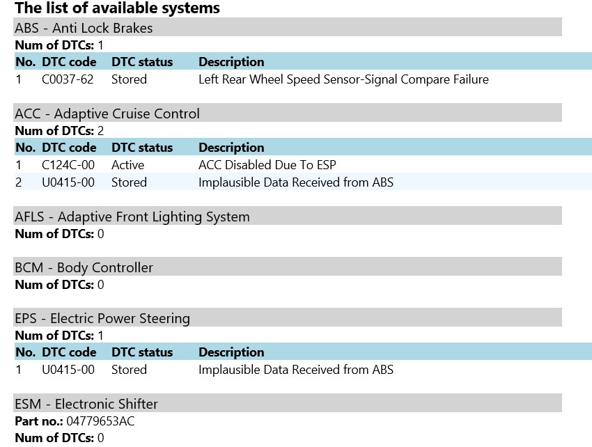 komm ich auf diagnose das ABS sensor hinten links funktioniert nicht.Neue
